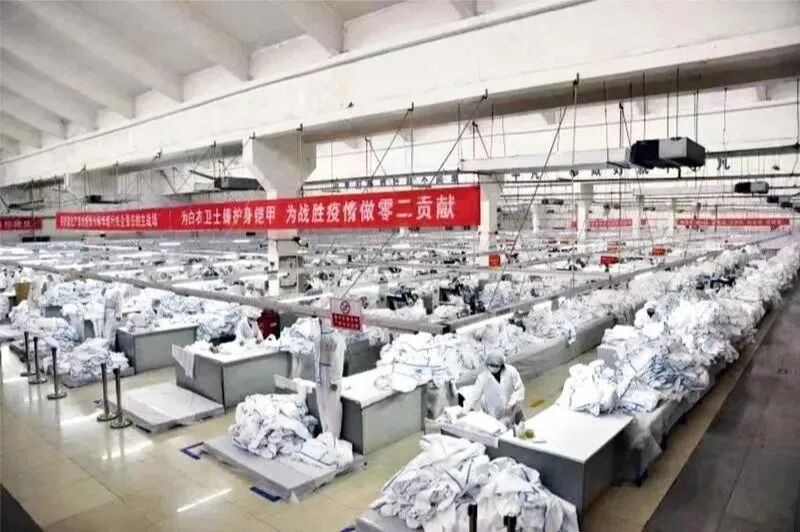 经过前一阶段的不懈努力,目前医疗物资统一调配和供应保障逐步强化,实现了从最初十分紧缺到紧平衡再到基本满足的转变。图为新兴际华集团所属际华3502公司防护服生产车间。工业和信息化部党组供图