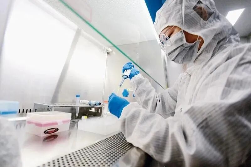 当前,疫情防控正处在最吃劲的关键阶段,容不得一丝懈怠。疫情防控不获全胜,医疗物资保障就决不轻言成功。图为2020年2月17日,在江苏省扬州市邗江生物医药创新实验中心,工作人员在生物安全柜操作台上对新冠肺炎病毒检测试剂进行操作。人民图片 孟德龙/摄